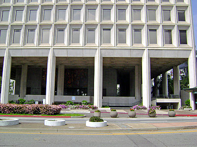 Collins talks to Sen. George Fergus (Jeff Daniels) – Ariel Rios Building, 1200 Pennsylvania Avenue NW, Washington, DC. This is the 12th Street side.