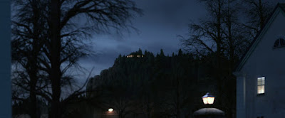 The film had a complex shooting schedule, jumping from Sweden to Switzerland to studio interiors in Los Angeles and then on to Norway and the U.K. before returning to Sweden, where principal photography finished in June of 2011. There are over 1,000 visual effects throughout the film, incorporating matte painting elements, removing or inserting buildings, adding snow and other seasonal features. All these visual alterations make it difficult sometimes to determine the locations because you don’t know what is real and what is not. Also, unlike the Swedish version, the American remake doesn’t maintain any geographical consistency so it’s not easy to guess where else they might have shot it.