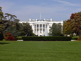 Chance puzzles a policeman by telling him "that tree is very sick" – White House (south side), 1600 Pennsylvania Avenue NW, Washington, DC.